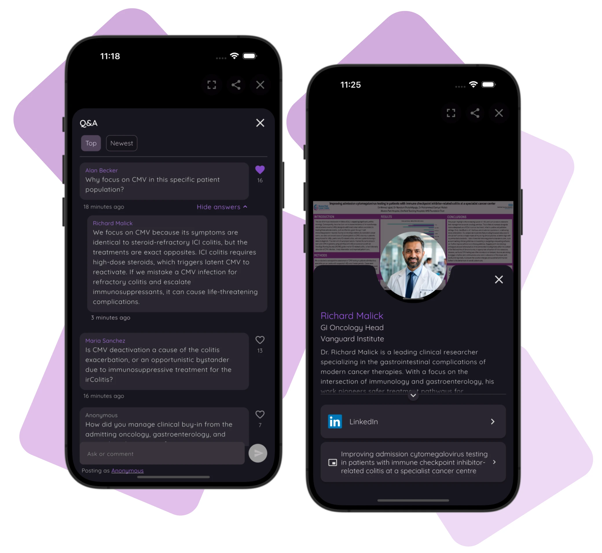 Attendees can leave questions directly on the poster and presenters answer when they have a moment. It takes the pressure off the rushed in-person window and means the conversation actually happens, whether or not both people were in the right place at the right time.